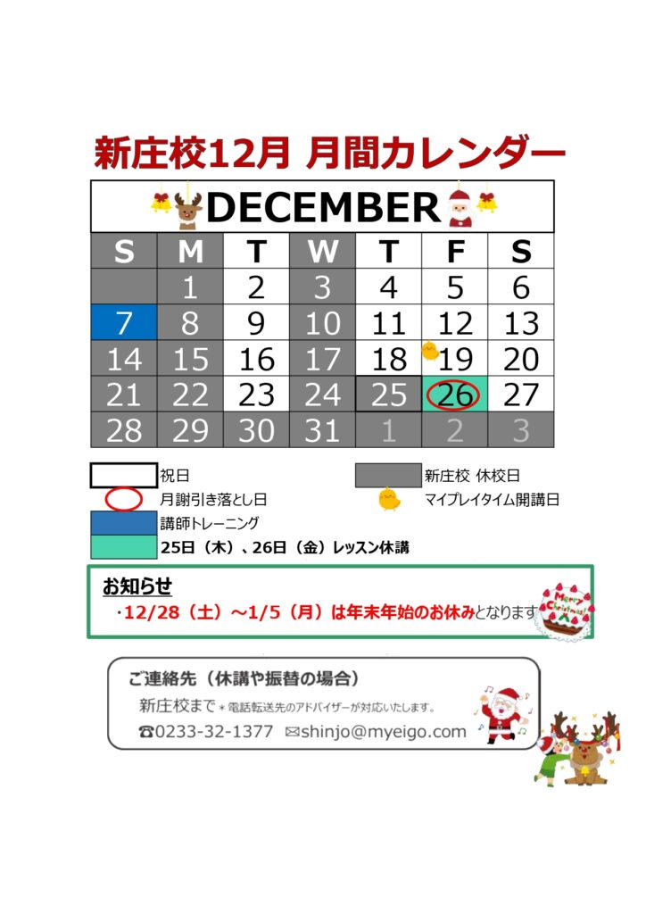 こちら新庄校の12月レッスンカレンダーになります⛄