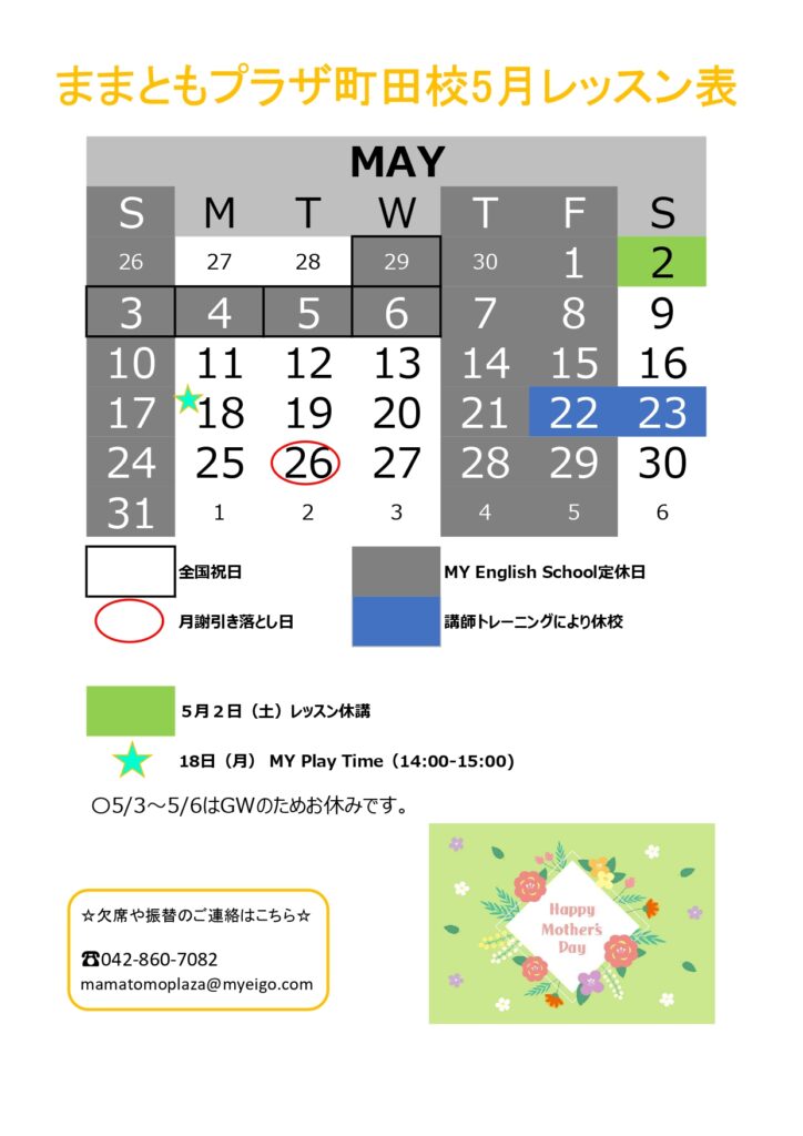 こちらままともプラザ町田校5月のレッスンカレンダーです♬