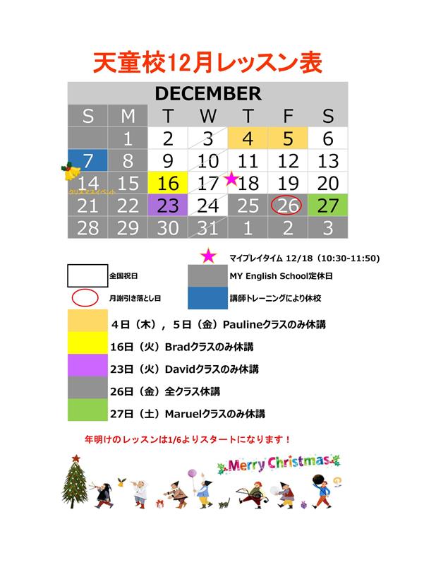 12月28日〜1月5日は年末年始休暇のため、レッスンは休講となります。
