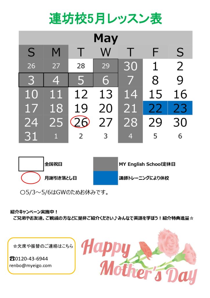 連坊校 5月レッスンカレンダー