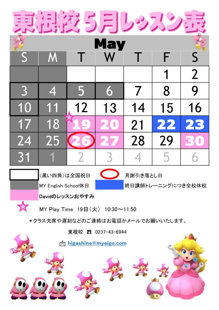 こちら東根校の5月レッスンカレンダーです!🐣
